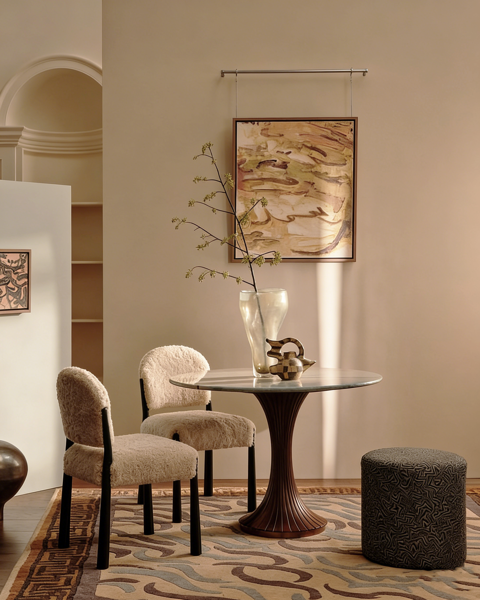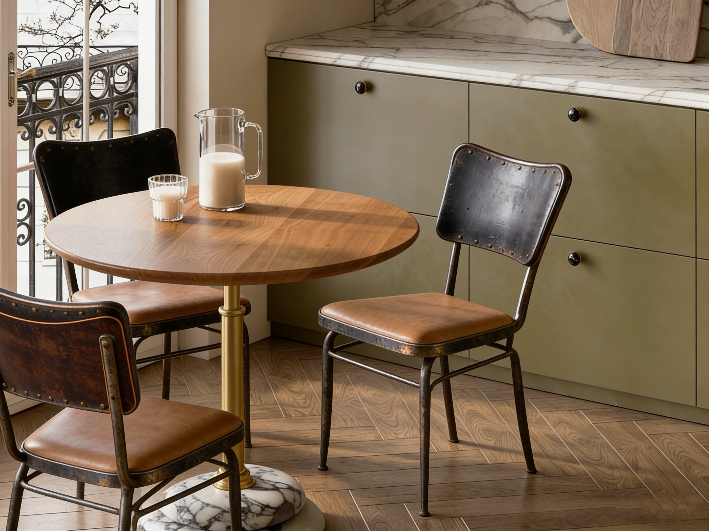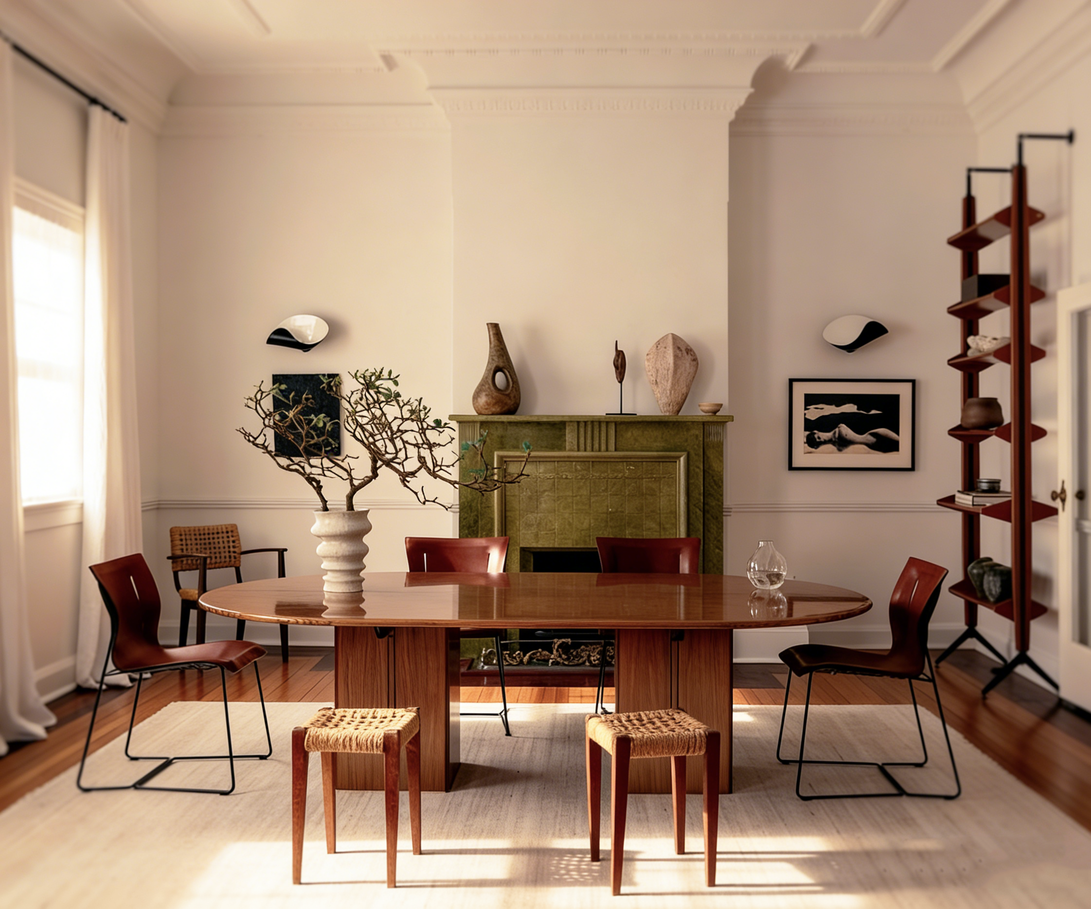 This table is a modern vintage-style solid wood dining table, with an overall design that combines natural texture with artistic appeal.